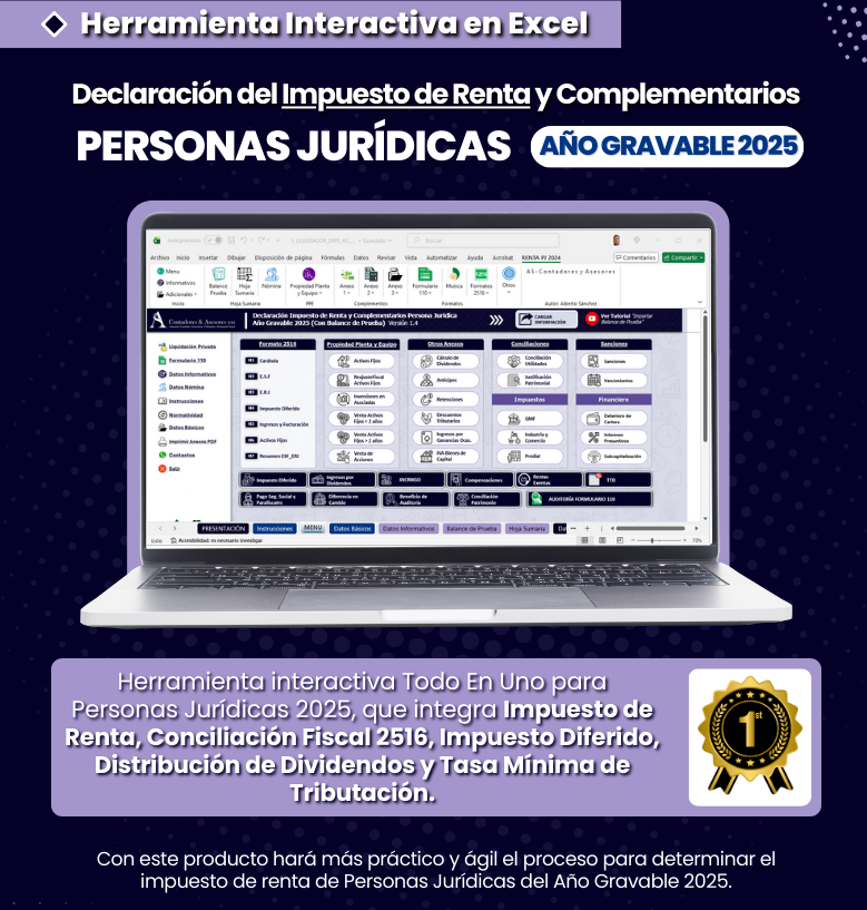 Este producto es ajeno e independiente a los procesos de contenidos en Ofiscol.com, por lo que, aunque esta herramienta interactiva fue revisada y aprobada para salir al aire en nuestro portal, cualquier responsabilidad en la presentación o desglose del contenido es asumida por el tercero.